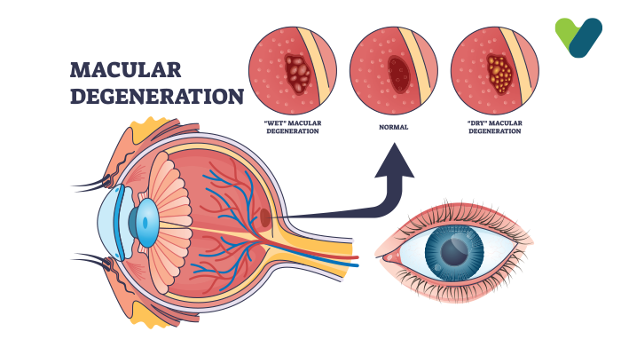 The main cause of macular degeneration is age. With age, the macula begins to lose its power and this leads to blurry vision. Since the macula is in the center of the retina, you find it hard to focus on finer details and see them. Larger things can still be visible, but the fine lines and objects become hard to spot. The macula helps you to see things in direct, straight sight. When it starts to degenerate, you cannot see the things right in front, but the ones on the sides are visible. For example, when looking at your watch, you may be able to read the numbers on the side of the watch but you would struggle to see the hands of the watch.